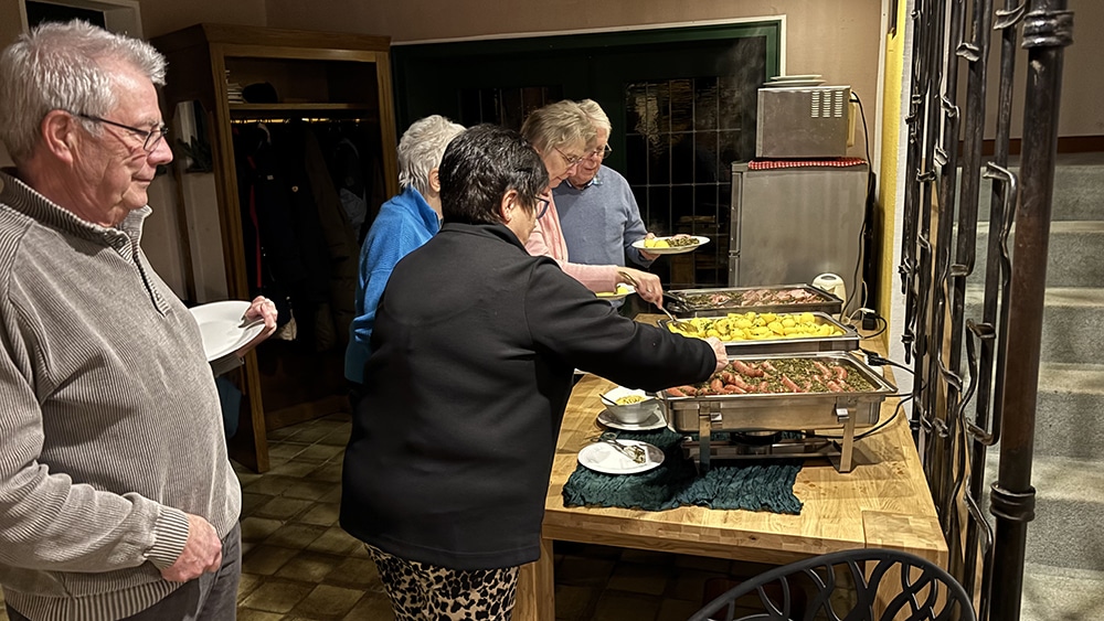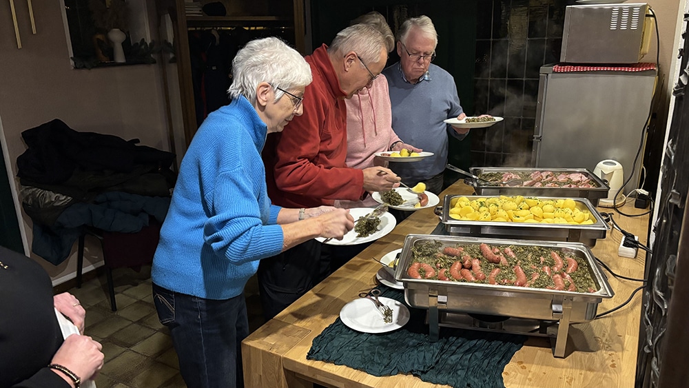 Die hungrigen Gäste freuen sich auf das unwiderstehliche Buffet, welches Familie Eisenberg mühevoll zubereitete. Fotos: Aleksandra Mösta