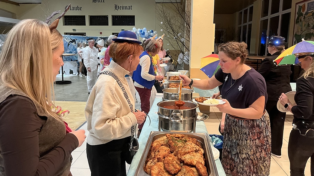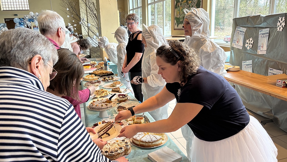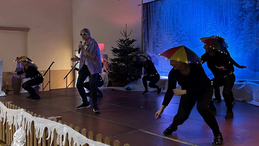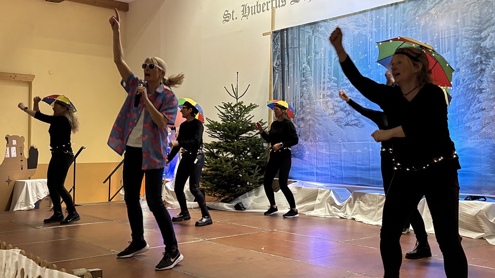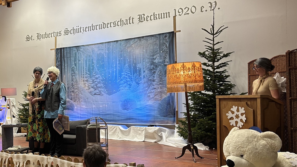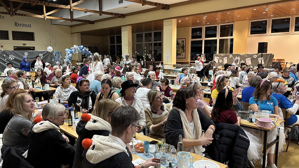 Schließlich wurden die Besucherinnen mit Sketchen, wie „Bauch-Beine-Po“, oder einem „Kita-WhatsApp-Chat“ unterhalten. Auch der Tanz sollte an diesem Nachmittag nicht zu kurz kommen, weshalb zu Beginn nicht nur gemeinsam zu „Wir wollen die Eisbären sehen“ getanzt wurde, sondern neben dem unterhaltsamen Auftritt zu dem Lied „Wackelkontakt“, begaben sich alle Damen in der Halle am Ende der Veranstaltung auf eine riesige Polonaise zu dem Sommerhit „Bella Napoli“, gesungen von Markus Baumeister, welcher, so wie jedes Jahr, mit Sohn Marlon Baumeister die Verwaltung über die Technik und die Musik übernahm.