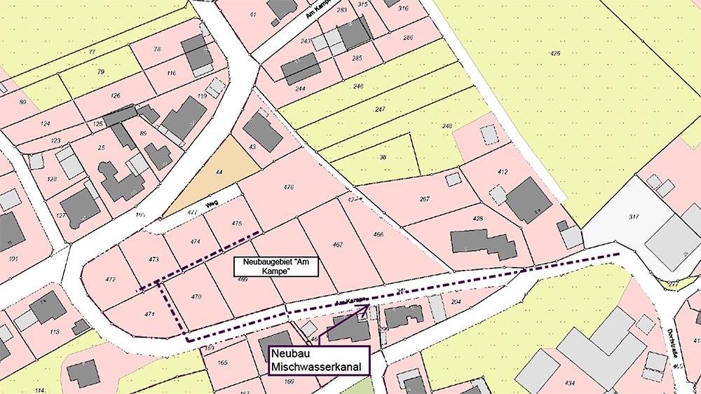 Beckum. Die Bauarbeiten zum Kanalbau Am Kampe in Beckum laufen seit dem 9. Februar. Das Bauvorhaben wird im Auftrag des Ruhrverbands ausgeführt. Der Baubereich erstreckt sich von dem Schacht auf Höhe der Dorfstraße Hausnr. 25 bis Am Kampe Hausnr. 5 / 7 (siehe Lageplan).