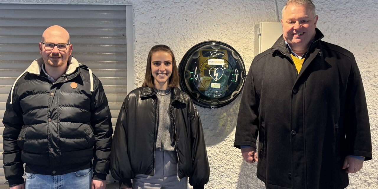 Balve. Nicht nur die Gesundheit, sondern auch die Sicherheit aller Menschen liegen sowohl der St.-Sebastian-Schützenbruderschaft Balve, als auch dem Team der Westenergie sehr am Herzen. Nachdem im vergangenen Jahr ein Mitglied der Alten Herren einen Herzinfakt in der Fußballkabine erlitten hat, stand für die Balver Vereine schnell fest, dass gerade stark besuchte Orte für den Notfall aufgestockt werden sollten. Somit wurde an der Balver Höhle, welche jährlich von rund 30.000 Gästen besucht wird, ein Defibrillator angebracht.