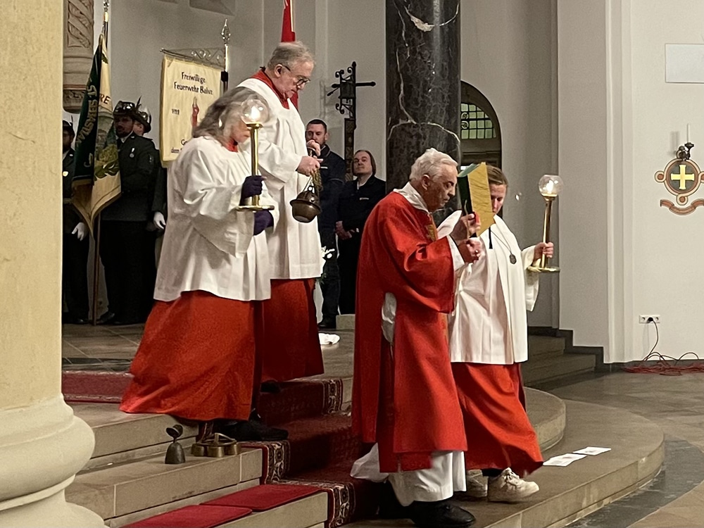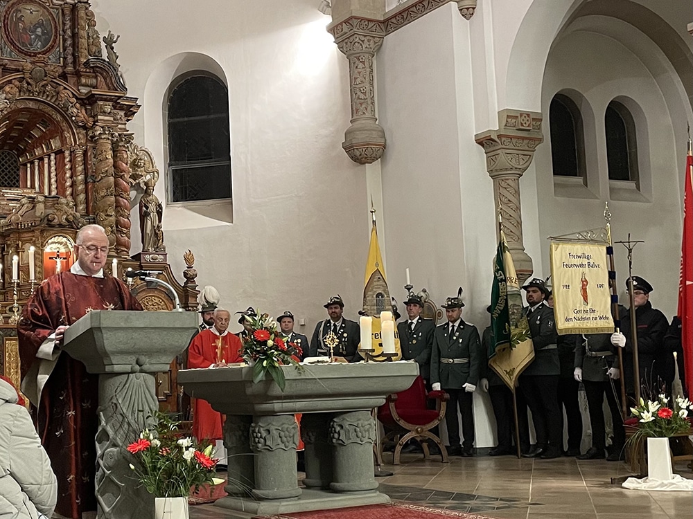 Balve. Am Dienstagabend feierte die Balver Pfarrgemeinde das Patronatsfest zu Ehren des Stadtpatrons Blasius von Sebaste. Dechant Andreas Schulte und Pater Pius zelebrierten den Gottesdienst, als Festprediger konnte Stadtkaplan Tobias Kiene aus Brilon gewonnen werden. Tobias Kiene war von 2015 bis 2019 als Vikar in Balve tätig, für ihn ist das Balver Patronatsfest ein besonderer Höhepunkt im Kirchenjahr. Entsprechend groß war seine Freude, wieder in „seiner alten Gemeinde“ zu sein. Mit Balve verbinde er viele positive Erinnerungen – sich zu erinnern sei wichtig, so halte man Gemeinschaft und Glauben lebendig.