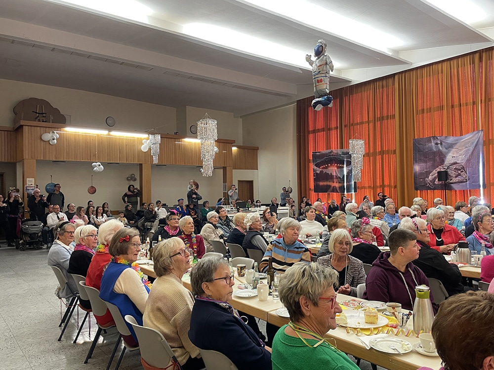 Mit abwechslungsreichen Tanzeinlagen und humorvollen Sketchen trafen die Akteurinnen genau den Geschmack der Besucherinnen. Programmpunkte wie „Mann ohne Ohren“, „Frau Hückeswagen“ oder die „Eheberatung“, begleitet von bekannten musikalischen Karnevalsklassikern, sorgten für viele Lacher und eine ausgelassene Atmosphäre.