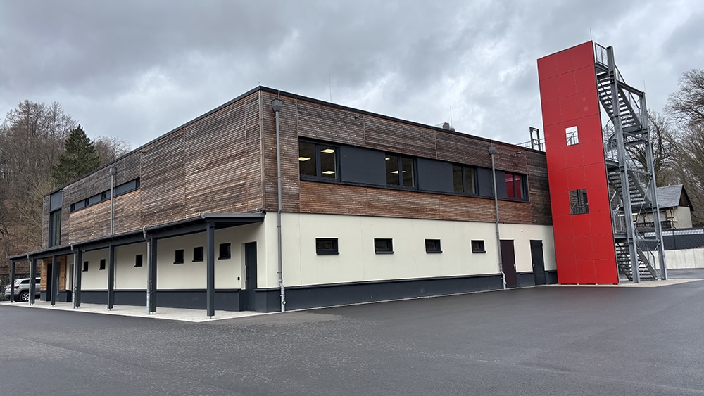 Das Effizienzgebäude verfügt zudem über eine Begrünung auf dem Dach. Nicht zuletzt kann auch die PV-Anlage, welche extra über eine gepflasterte Stelle verfügt, zu Übungszwecken dienen, da den Einsatzkräften so veranschaulicht werden kann, wie man einen derartigen Brand erlischt – sie erfüllt also sogar einen doppelten Zweck.
