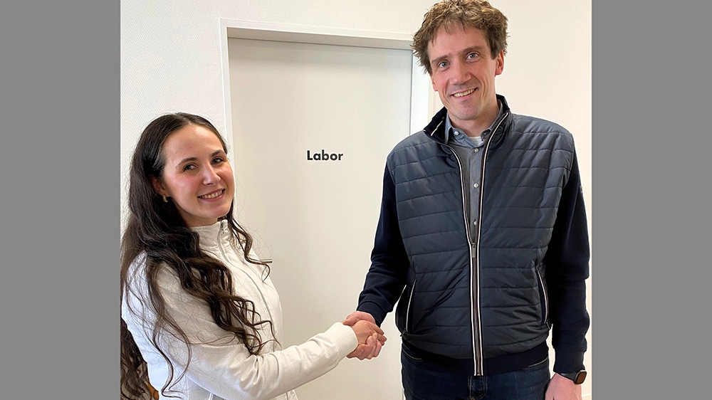 Sandra Keska war die erste Auszubildende des Medizinischen Versorgungszentrums Neuenrade. Nun hat sie erfolgreich und in Rekordzeit ihren Abschluss gemacht. Fabian Cormann gratuliert zur bestandenen Prüfung. Fotos: Stadt Neuenrade/Annabell Steiner