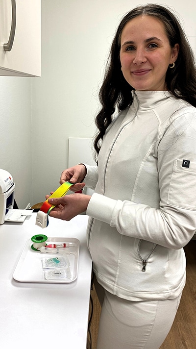 Im MVZ ist sie die frisch gebackene Medizinische Fachangestellte aktuell vor allem im Labor sowie in der Anmeldung im Einsatz. Darüber unterstützt sie die Ärztinnen und Ärzte. Die Abwechslung und Vielseitigkeit schätzt Sandra Keska sehr an ihrem Beruf – und auch über ihr Team kann sie nur Gutes berichten. „Ich verstehe mich super mit meinen Kolleginnen und Kollegen und fühle mich hier sehr wohl.“ Mit der abgeschlossenen Ausbildung hört das Lernen für sie aber nicht auf. Sie arbeitet schon an ihrer Weiterbildung zur Heilpraktikerin.