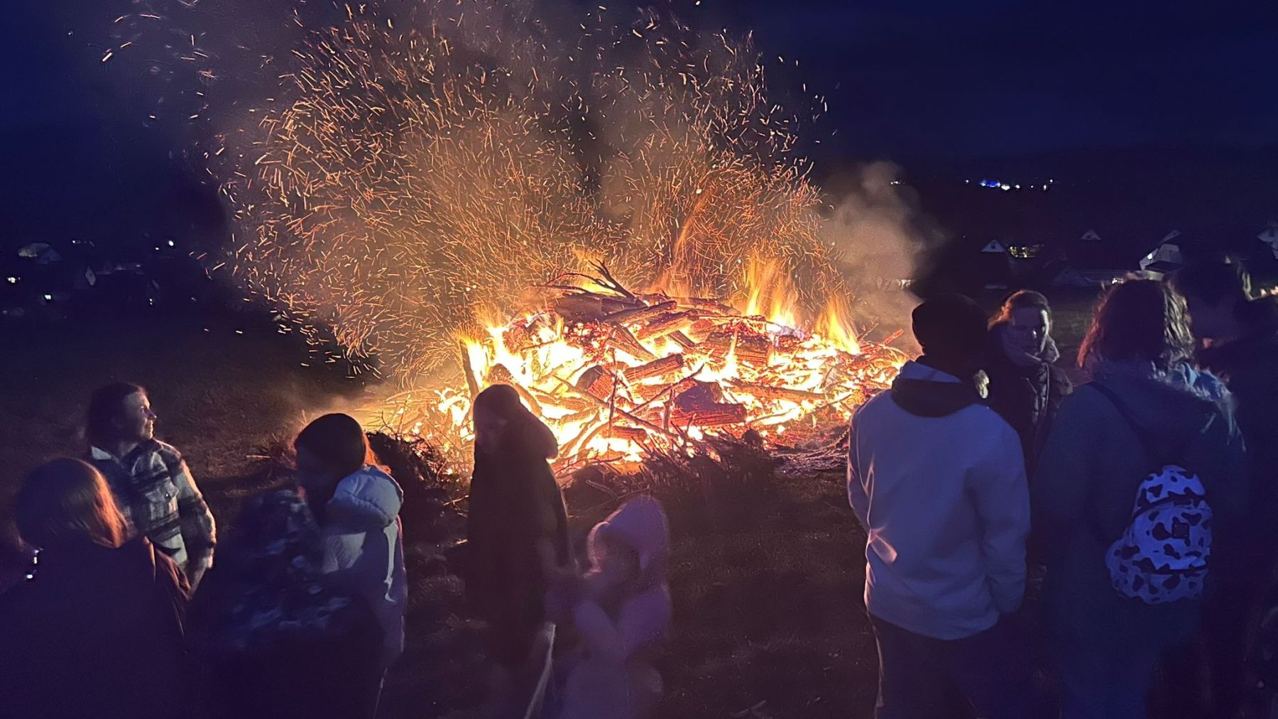Hoch über den Dächern von Balve, auf dem Wachtloh, hatten sich wieder zahlreiche Balverinnen und Balver eingefunden, um diese alte Tradition aufrechtzuerhalten. Hell leuchtete das Feuer in der klaren Nacht und verkündete somit das Ende des Winters und die Auferstehung. Der Musikverein Balve begleitete den Abend wieder musikalisch, und die Mitglieder des Kolpings versorgten die Besucher mit Würstchen und Getränken, bis das Feuer allmählich seine Kraft verlor. wk/mk