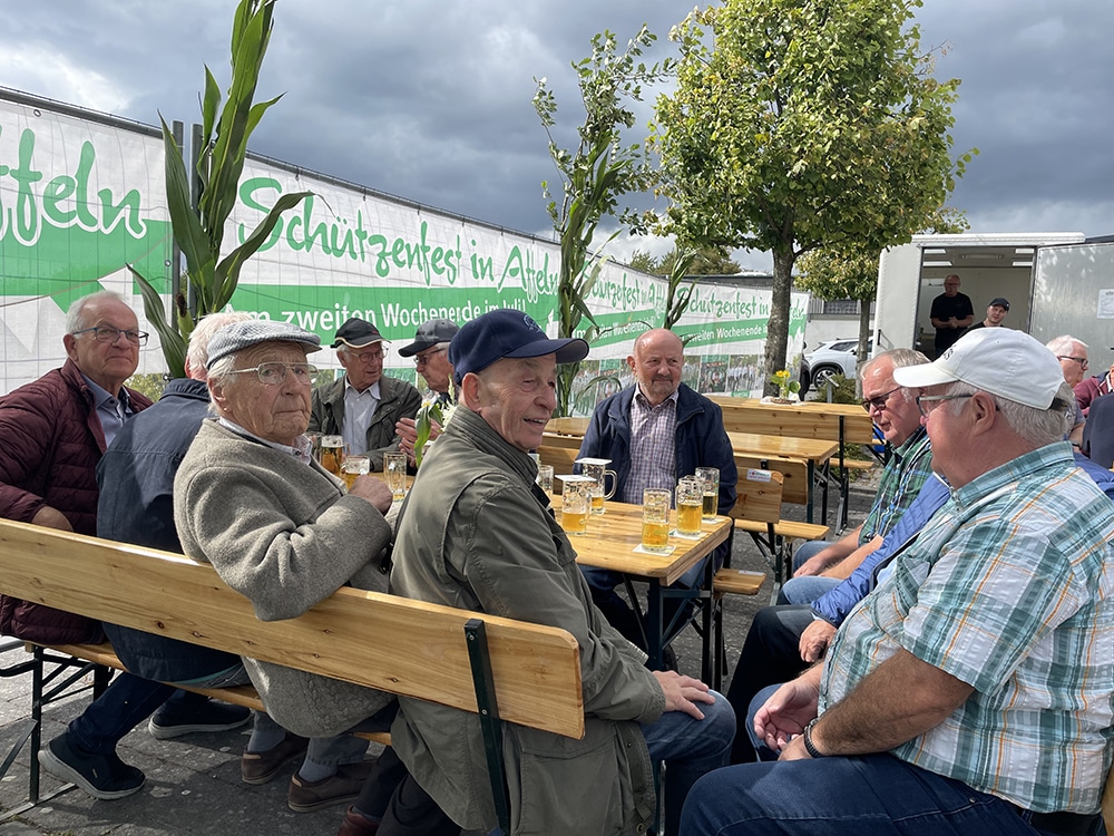 Affeln. Am vergangenen Samstag fand in Affeln die dritte Auflage des Jedermannschießens der Schützenbruderschaft St. Petrus und Paulus Affeln 1861 statt. Bei diesem besonderen Wettbewerb wird nicht auf einen Vogel, sondern auf eine große Holz-Bierflasche mit kleinen Insignien geschossen. Mitmachen dürfen alle, die einen Bezug zu Affeln, Altenaffeln oder Blintrop haben – unabhängig von einer Mitgliedschaft im Schützenverein.