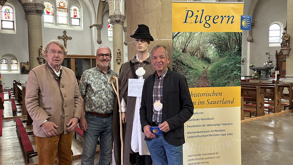 Balve. Vom 4. bis zum 24. August können alle Interessenten von 9-17 Uhr in der St.-Blasius-Kirche Balve eine bemerkenswerte Wanderausstellung durchstöbern, welche sich mit dem Pilgern befasst. Am Montag wurde diese durch den erfahrenen Pilger und Hauptinitiator vom Heimatbund, Josef Lumme, eröffnet.