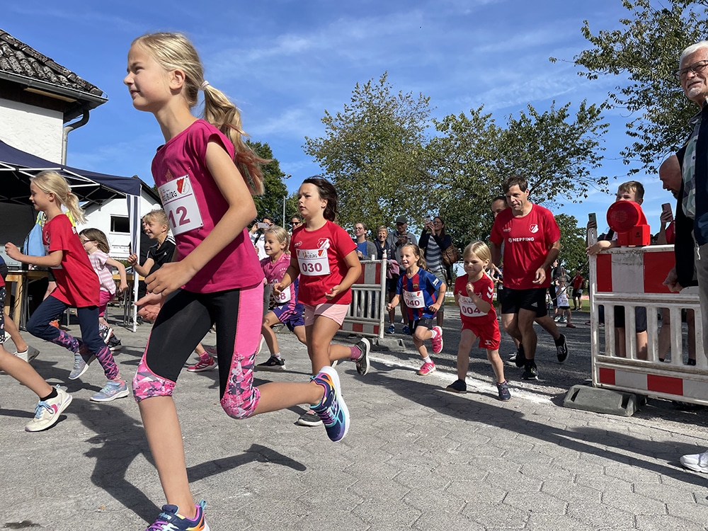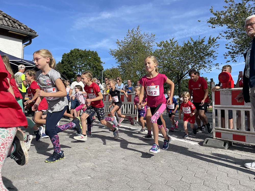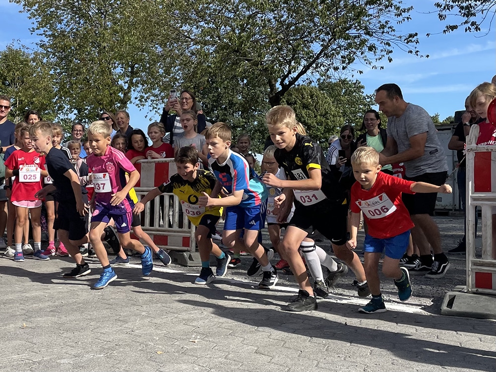 Bereits ab 9.30 Uhr begann die Anmeldung, bevor um 10.15 Uhr die Walker den sportlichen Tag eröffneten. Kurz darauf, um circa 10.30 Uhr, gingen die Kinder und Jugendlichen an den Start. Die Jüngsten (Jahrgang 2015 und jünger) bewältigten eine Strecke von 800 Metern, während die Jahrgänge 2014 und älter 1200 Meter liefen. Die Kinder traten dabei in getrennten Mädchen- und Jungengruppen an. Eine spannende Neuerung in diesem Jahr bildete der Team-Wettbewerb: Drei Nachwuchsläuferinnen oder -läufer konnten als Mannschaft antreten, die jeweiligen Ergebnisse flossen in eine gemeinsame Teamwertung ein. Für die Kleinsten gab es außerdem eine Hüpfburg, die für viel Freude abseits der Strecke sorgte.