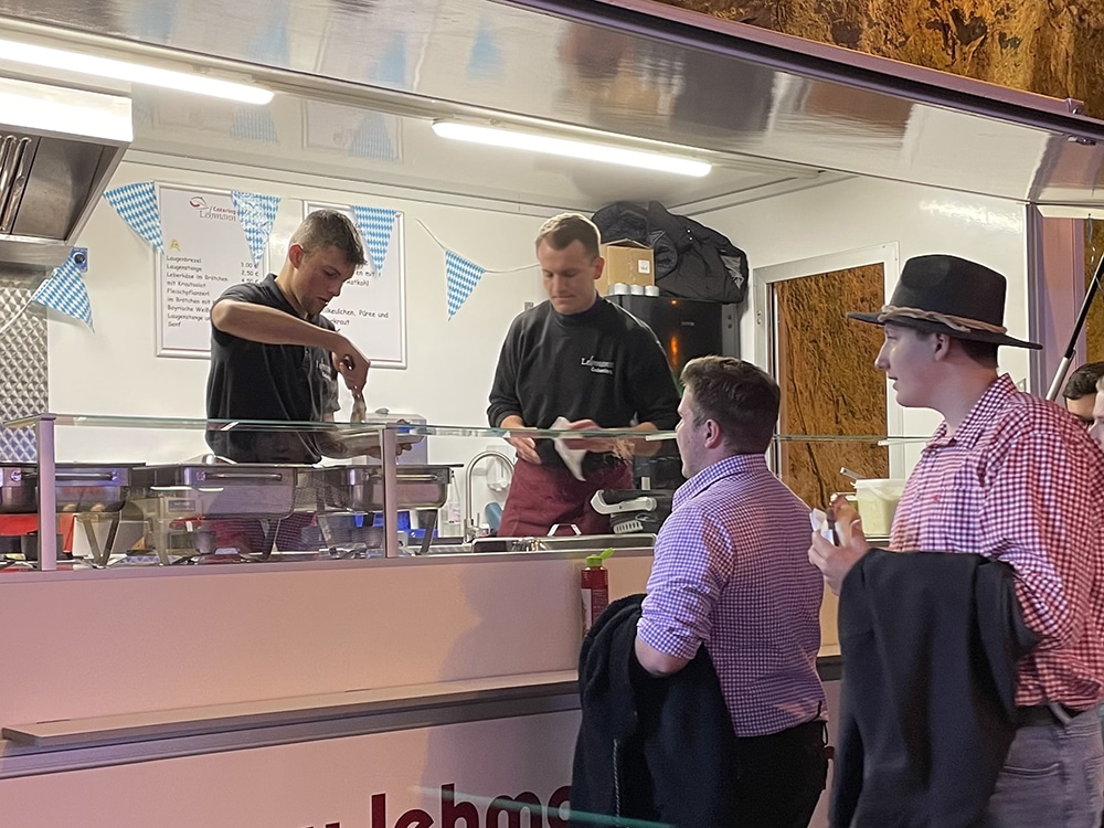 Für das leibliche Wohl war ebenfalls bestens gesorgt. Das Catering-Team verwöhnte die Gäste mit herzhaften, bayerisch inspirierten Gerichten – natürlich mit Fleisch aus der heimischen Region. Dazu wurden Bayreuther Hell, Veltins, Aperol Spritz, Lillet und weitere Getränke serviert.