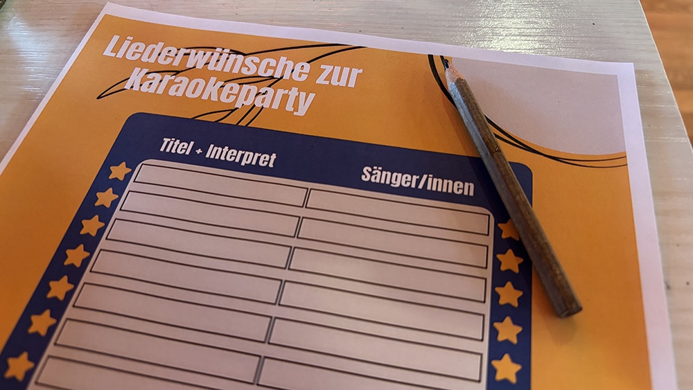 Am Abend wird in der Schützenhalle in Eisborn zudem ein Karaokeabend stattfinden. Um diesen ganz persönlich zu gestalten und vorzubereiten, gingen während des Konzertes Listen herum, in die man Liederwünsche und Sänger für den Abend eintragen konnte. Im Anschluss an das Konzert wurden also zwei Mikrophone auf der Bühne platziert und alle Liedtexte wurden auf die große Leinwand projiziert, sodass alle an diesem Abend teilnehmen, mitsingen und Spaß haben können.