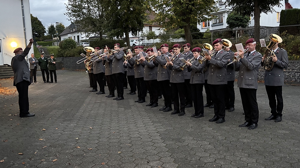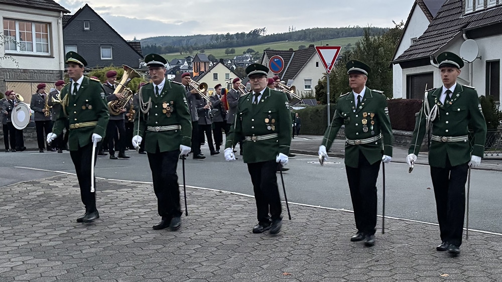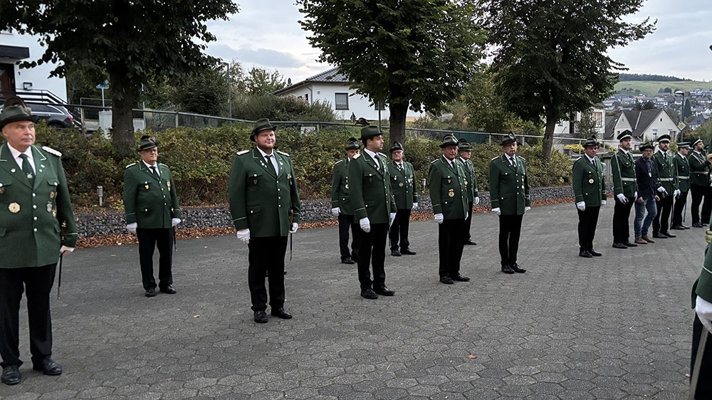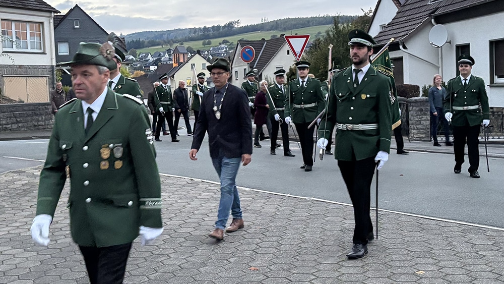 Dementsprechend war es auch an diesem Wochenende wieder so weit. Nach der Messe am Samstagabend, marschierten der Vorstand, die Schützen und Pater Pius gemeinsam mit dem Musikverein Garbeck von der Heiligen Drei Könige Kirche zur Schützenhalle. Vor Ort wartete nicht nur die örtliche Löschgruppe, welche für den Thekendienst am Abend zuständig war, sondern auch der Ortsvorsteher Christoph Haarmann nahm an diesem großen, besonderen Treffen teil.