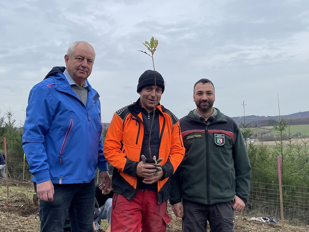 Gepflanzt wurde auf einer Fläche von rund 4.000 Quadratmetern, die zum Schutz der jungen Pflanzen eingezäunt wurde. Zwischen die Eichen setzten die Helfer zudem Buchen, Birken und Vogelbeeren, um die Artenvielfalt zu fördern und den Nährstoffkreislauf zu sichern. „So entsteht ein widerstandsfähiger Wald, der sich langfristig selbst erhält“, erklärt Gerhard Schumacher, ehemaliger Kämmerer der Stadt Neuenrade.