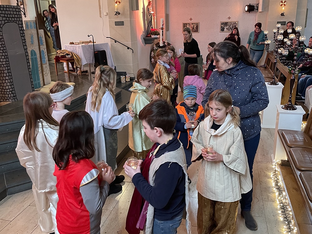 Ein besonderes Highlight bildete das musikalische Programm in der Kirche. Nach der Aufführung der acht Mellener Kommunionkinder zum Thema St. Martin und einem stimmungsvollen Lichtertanz sorgte Sängerin und Chorleiterin Lea Bergen aus Schwelm zusammen mit ihrem Chor „Unbenotet“ für Gänsehautmomente. Mit einer Mischung aus besinnlichen und schwungvollen Pop- und Rocksongs luden sie das Publikum zum Zuhören und Mitsingen ein.