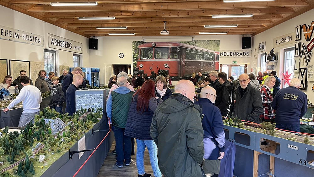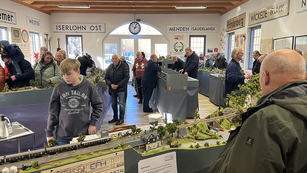 Seit 2012 kamen, mit Ausnahme von Corona, jedes Jahr zahlreiche Besucher und Besucherinnen am Bahnhofshaus zusammen, um die nachgebaute Hönnetalbahn der 1970/1980er Jahre zu bewundern und sich mit Kuchen zu stärken.