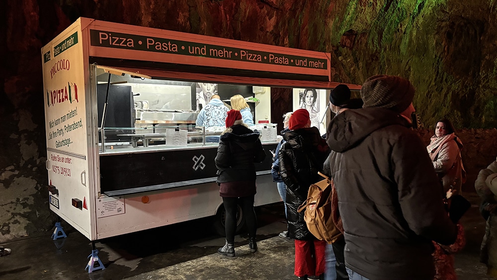 Auch für eine Verpflegung war an diesem besonderen Abend gesorgt. Während am Höhleneingang Süßigkeiten und italienische Speisen erworben werden konnten, wurde im linken Höhlenarm eine große Theke aufgebaut, an der warme und kalte Getränke, wie Bier, Softdrinks, Glühwein, oder Punsch erworben werden konnten. Der Erlös dessen wird nun an den Schützennachwuchs und an das Jugendorchester in Balve gespendet, dementsprechend galt an diesem Abend: „Trinken für einen guten Zweck“, so Christoph Rapp. AM