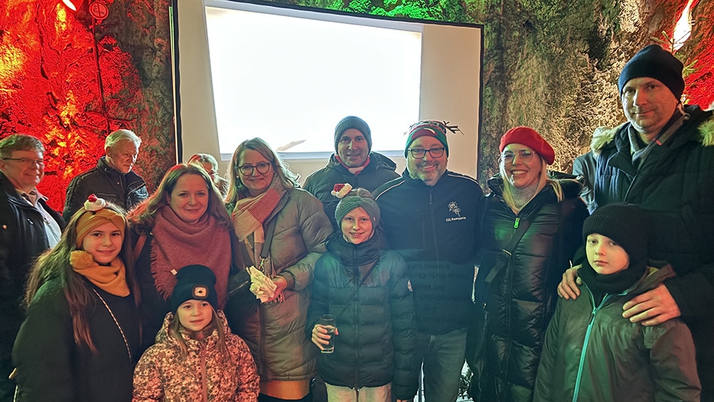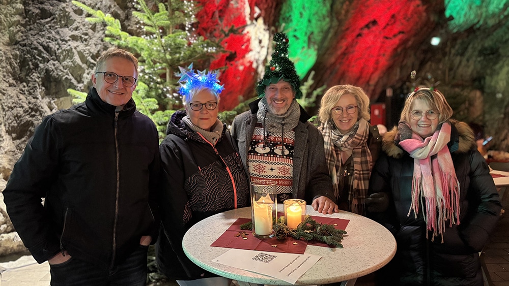 Um dies auch reibungslos zu ermöglichen, hingen in der Höhle einerseits zwei Leinwände, auf denen der Liedtext projiziert wurde, außerdem waren auf jedem Tisch QR-Codes hinterlegt, sodass die Liedtexte auch auf dem Smartphone aufgerufen werden konnten. Dementsprechend wurde die Einladung zum gemeinsamen musizieren und mitsingen auch freudig von den Besucherinnen und Besuchern angenommen.