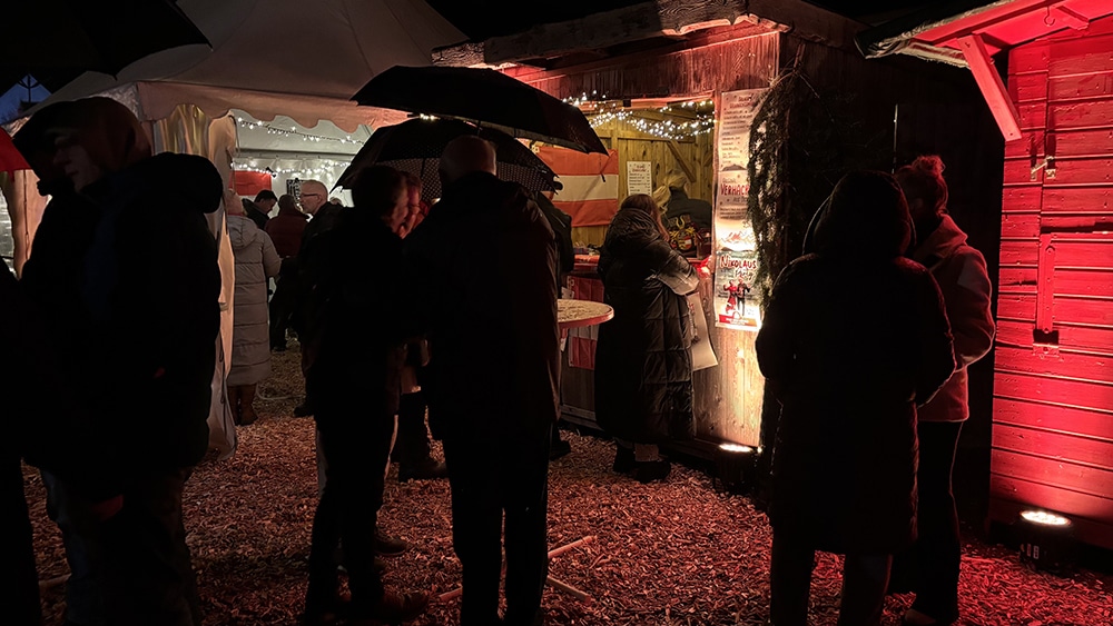 Um am Samstagabend auch für reichlich Unterhaltung zu sorgen, bereicherten ein spanisches Duett und der Balver Festspielverein das Balver Herz mit einem tollen Bühnenprogramm. Tannenbäume, Dekorationen und sogar eine Schneekanone, sorgten für das weihnachtliche und gemütliche Flaire auf dem Drostenplatz. Und dieses breit gefächerte Angebot in der Kleinstadt lockte letztlich auch zahlreiche Besucherinnen und Besucher am Samstagabend in die Zelte und Unterstände – trotz des Regens ließ sich keiner die Laune verderben. AM